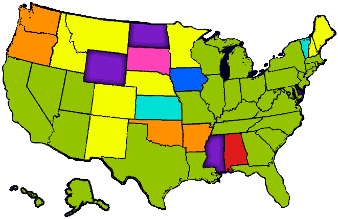 Yellow states were collected in 2007/2008. Teal states were collected in 2009.